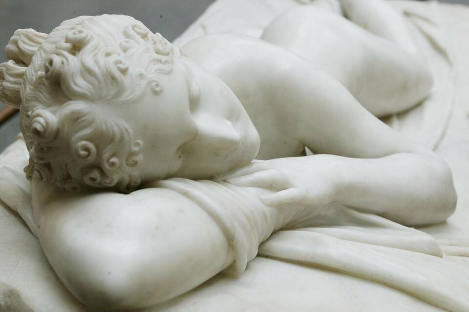 The V&A holds two of Canova's most emblematic pieces, 'The Three Graces', jointly owned by National Museums Scotland, and 'Theseus and the Minotaur', which were transported to England before the artist's death in 1822. From the 19th century onwards, his sculpture has continued to inspire artists who have copied and reinterpreted his work in a variety of materials, including bronze, plaster, porcelain and glass. Several of these examples can also be found in our collection.