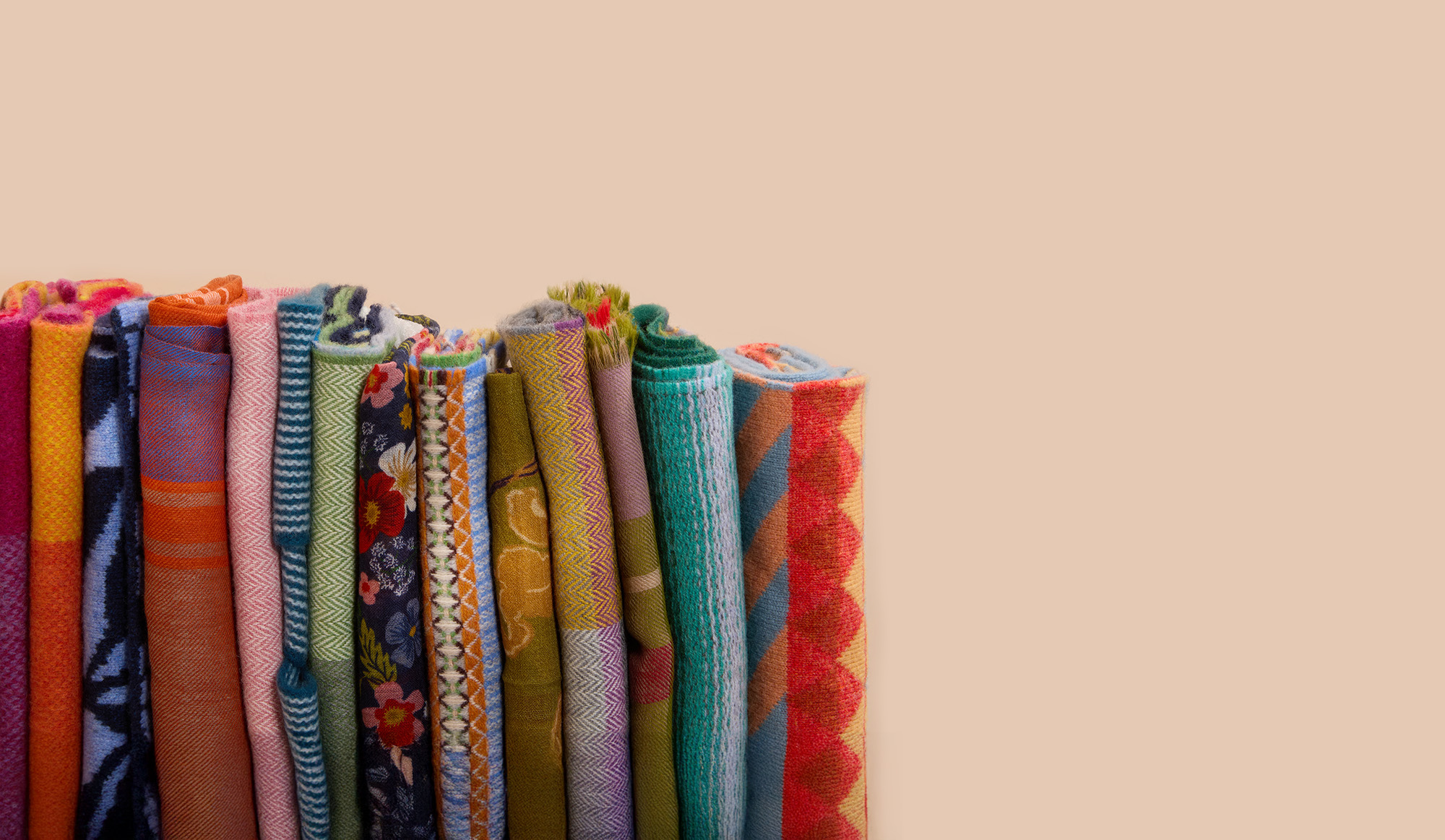 Silk, cotton, and wool scarves, crafted by hand in luxurious fabrics and striking designs